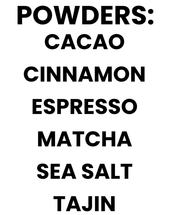 CINNAMON AND MATCHA POWDER ARE OUR MOST POPULAR~