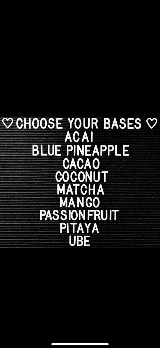 BLUE PINEAPPLE, CACAO, COCONUT, MANGO, MATCHA, PASSIONFRUIT, PITAYA AND UBE ARE VEGAN.